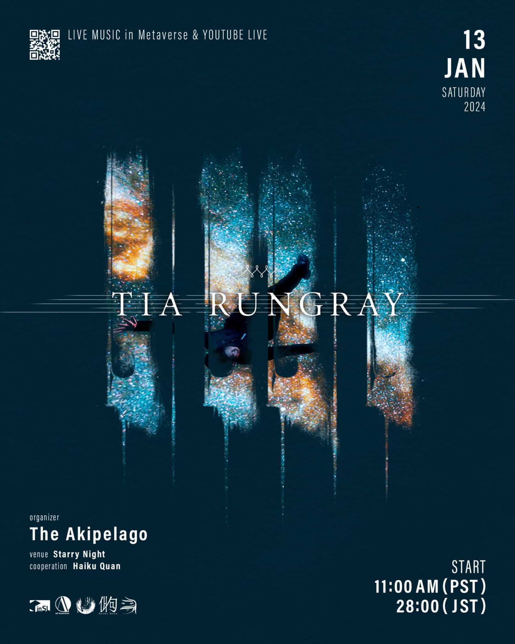 Tia Rungray will perform at The Akipelago’s Starry Night. Please immerse yourself in his music and the universe in a space surrounded by stars in all directions.